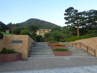 公立こだて未来大学:傾斜面に立っているため、市街地のネオの向こうに浮かぶ美しい函館山のシルエットが見られる人気スポット。