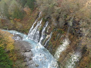 白ひげの滝:国内でも有数の地下水の滝であり、美瑛川本流にかかり、数十条の細い糸を引くように落水する美しい景色が楽しめます。落水する川もコバルトブルーに輝いてとても幻想的です。名前の由来は、日光を白く反射する滝が細く何本も枝分かれして川に落水するところがまるで白ひげのようであったためと言われています。上流に行くと、イワナ釣りが楽しめるため、親子で楽しく過ごすこともできます。入場料もないため気軽に行けることも特徴です。