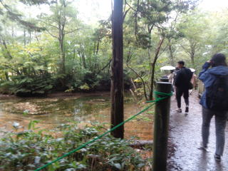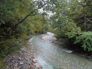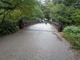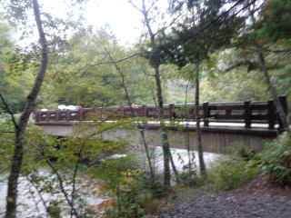 穂高橋:大正池から田代湿原・田代池を経由し、梓川沿いの遊歩道あるいは樹林帯の中の遊歩道をゆっくり歩くこと小一時間。田代橋・穂高橋にたどり着きます。