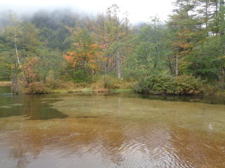大正池は清らかな水の底に潜む魔物の姿を隠すようにその色を変えながら今日も山々を讃えている