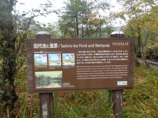 田代湿原:原生林のなかに、ぽっかりあいた湿原に広がる田代池。八右衛門沢などからの土砂によって流れがせき止められてできた浅い池です。池のなかには幾つかの島があり、まるで水田地帯のように穏やかな風景となっています。田代池の四季は美しく、夏はイチョウバイカモや周辺のニッコウキスゲ、コケモモが箱庭のような美しい景観を見せてくれます。5月の新緑や10月の黄葉、晩秋の霧氷もおすすめの光景です。