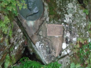 ウェストン碑:梓川の辺り、霞沢岳、六百山を望む巨岩に一人の男のレリーフがある