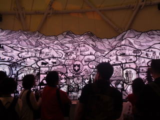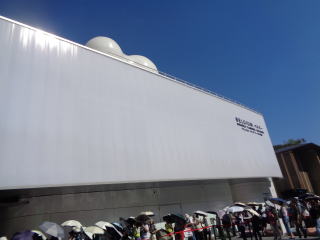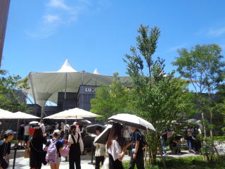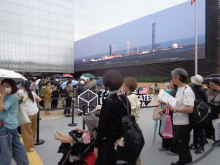 人気のあるパピリオンは大勢の方が見学希望しています。開催から2ヶ月過ぎて見学済の方が多く、新たに見学する人が少なくなったのでしょうか。他の人気のあるパピリオンは結構並んでいて待ち時間が長いようです。