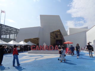カナダパピリオン:カナダパビリオンのコンセプトは『再生(Regeneration)』。春の訪れと共に凍っていた川の水が溶ける風景をイメージしています。パビリオン外観は、カナダで見られる自然現象「水路氷結」を表現していて、川面の氷が溶けて流れることで生まれる儚(はかな)い氷の造形が魅力です。氷に覆われた外観とは対象的に、パビリオン内ではカナダの温かさ、開放性、前向きな姿勢が表現され、来館者はカナダの革新性、多様性、創造性、持続可能な社会に関する取り組みを体験できます。